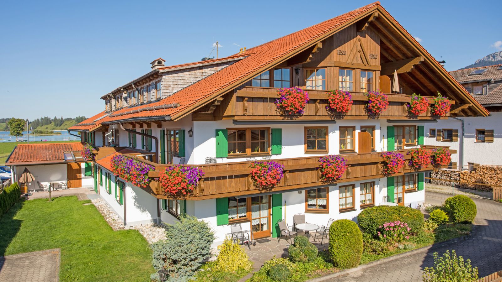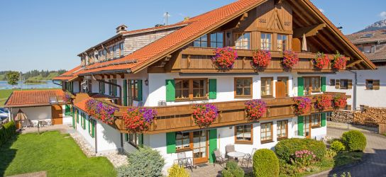 Unser Ferienhaus ist gemütlich und komfortabel. Es besitzt 12 liebevoll im modernen, alpenländischen Stil eingerichtete Ferienwohnungen für 2 bis 6 Personen mit allem Komfort, den man im Urlaub braucht. Genießen Sie bereits am Morgen den Blick vom Balkon oder von der Terrasse in die Allgäuer Berge oder den Forggensee.