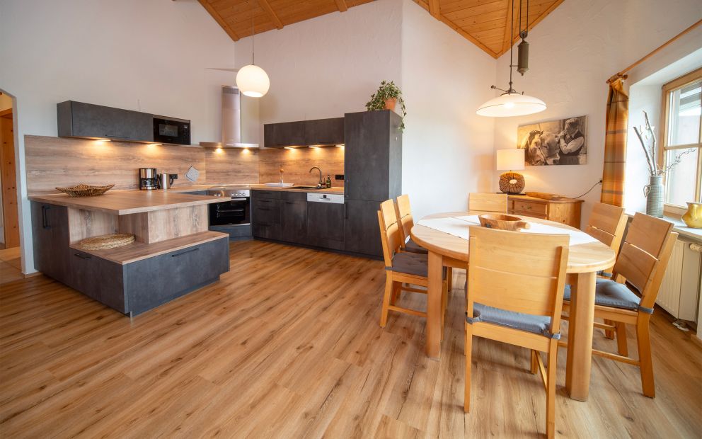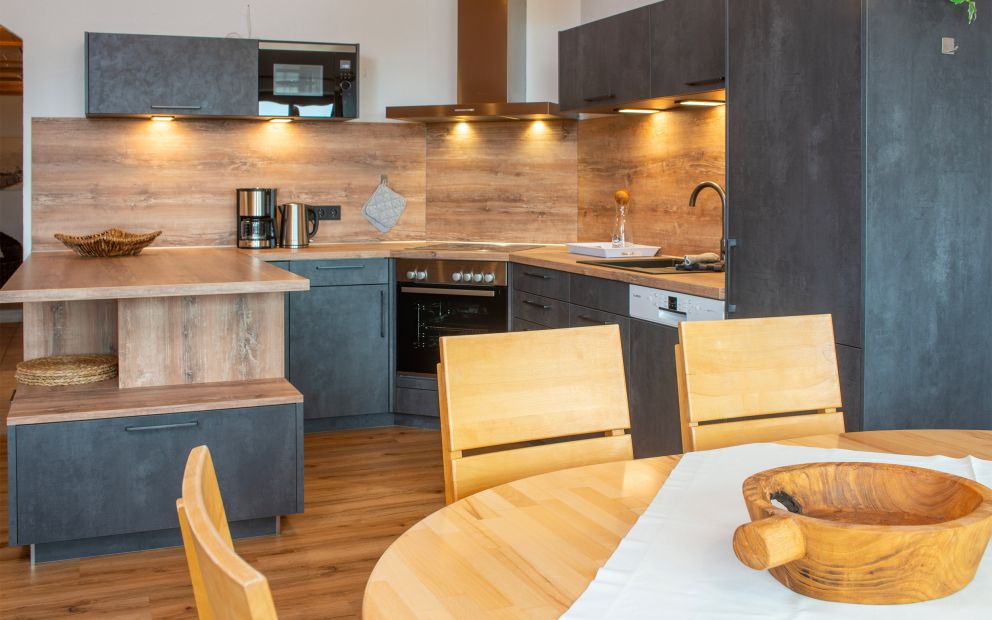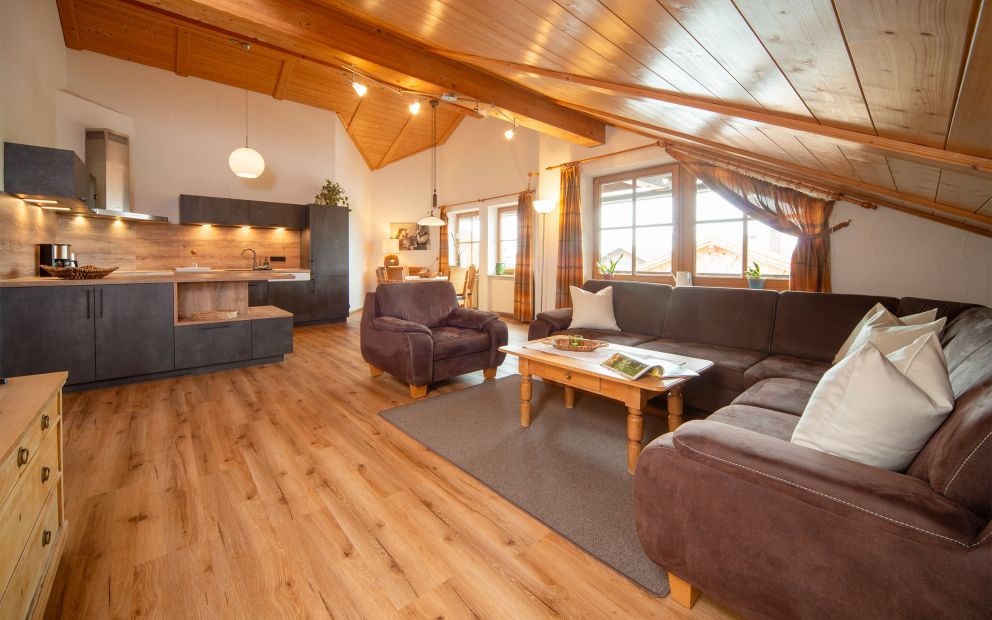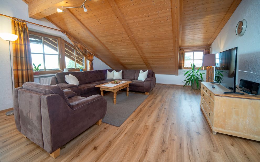 Unsere Ferienwohnung "zwölf" im Dachgeschoss bzw. 2. Stock hat eine Größe von 100 qm. Sie bietet Platz für 4 Personen.